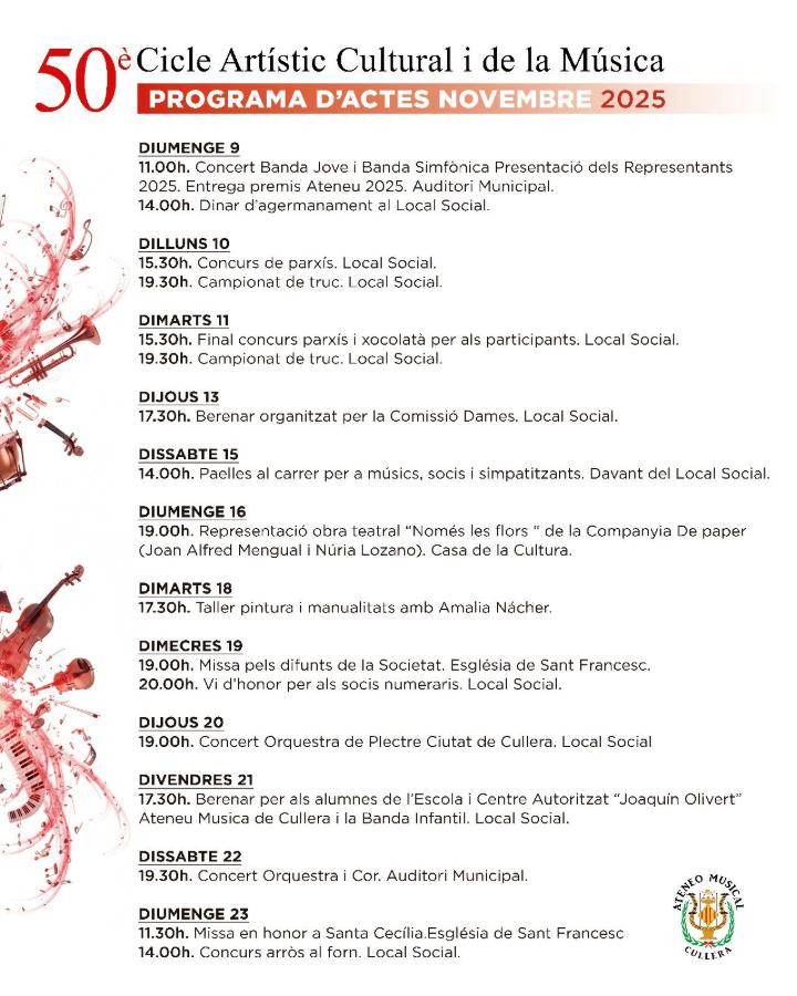 Comença ja novembre i, amb ell, la cinquantena edició del Cicle Artístic Cultural i de la Música de l'Ateneu Musical de Cullera!!